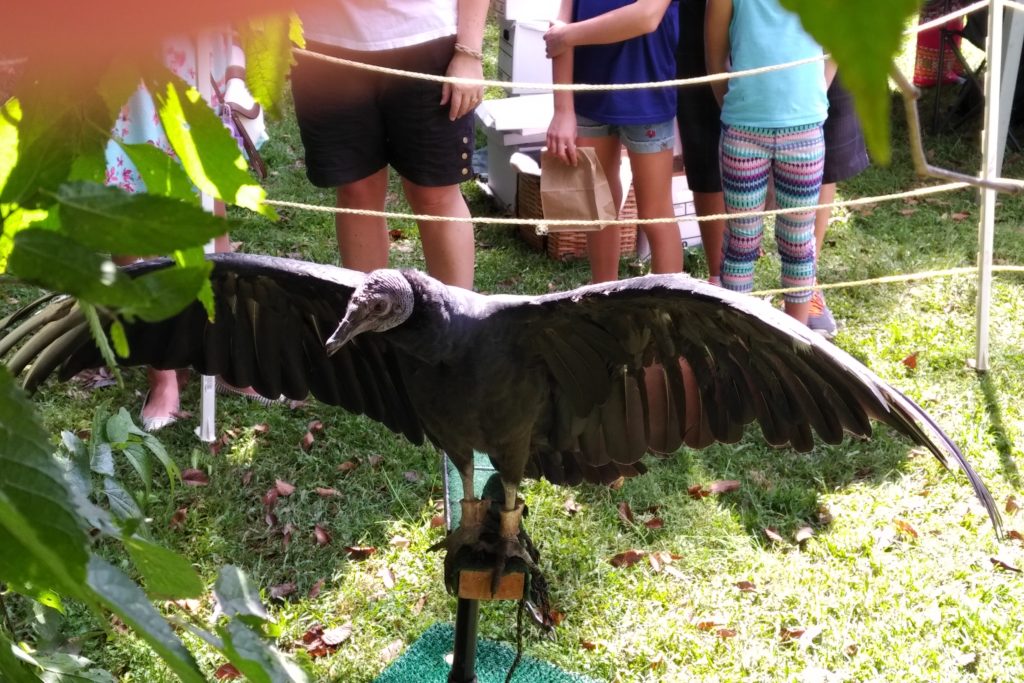 Dante is a Black Vulture (Coragyps atratus). He was “rescued” by some well-meaning people when he was a chick and is a human imprint. That makes him non-releasable and is likely the cause of his annual feather plucking. Dante came to us in 2005.